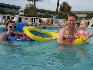 Sullivan's island in the distance. They were pretty and it was a nice warm up for the kids. Since they were somewhat around the Sea Cabins, I had to hold Emily up and Daddy held Christian up so they could see them.